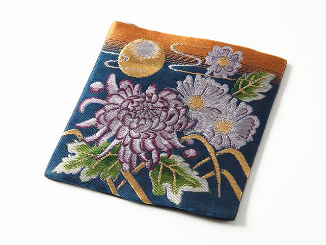 日本土産に! 西陣絹織物 金襴コースター「菊」 【レターパック可】