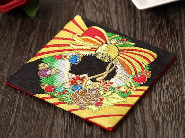 クリスマスを華やかに演出します! 西陣絹織物 金襴コースター「クリスマスリース」 【レターパック可】
